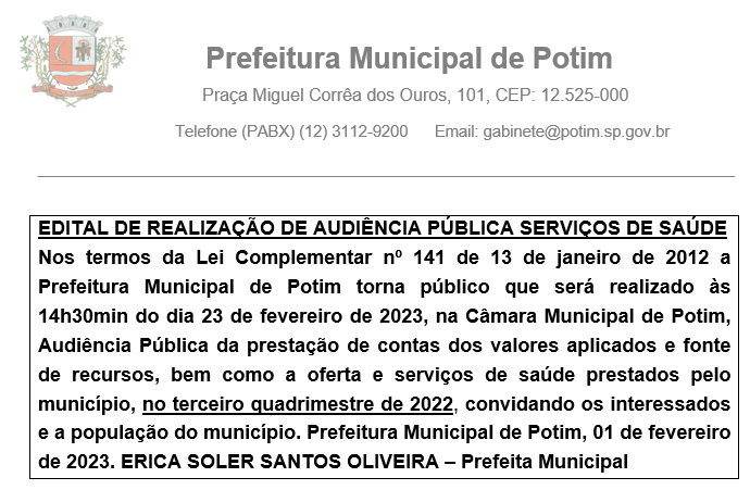 EDITAL DE REALIZAÇÃO DE AUDIÊNCIA PÚBLICA SERVIÇOS DE SAÚDE